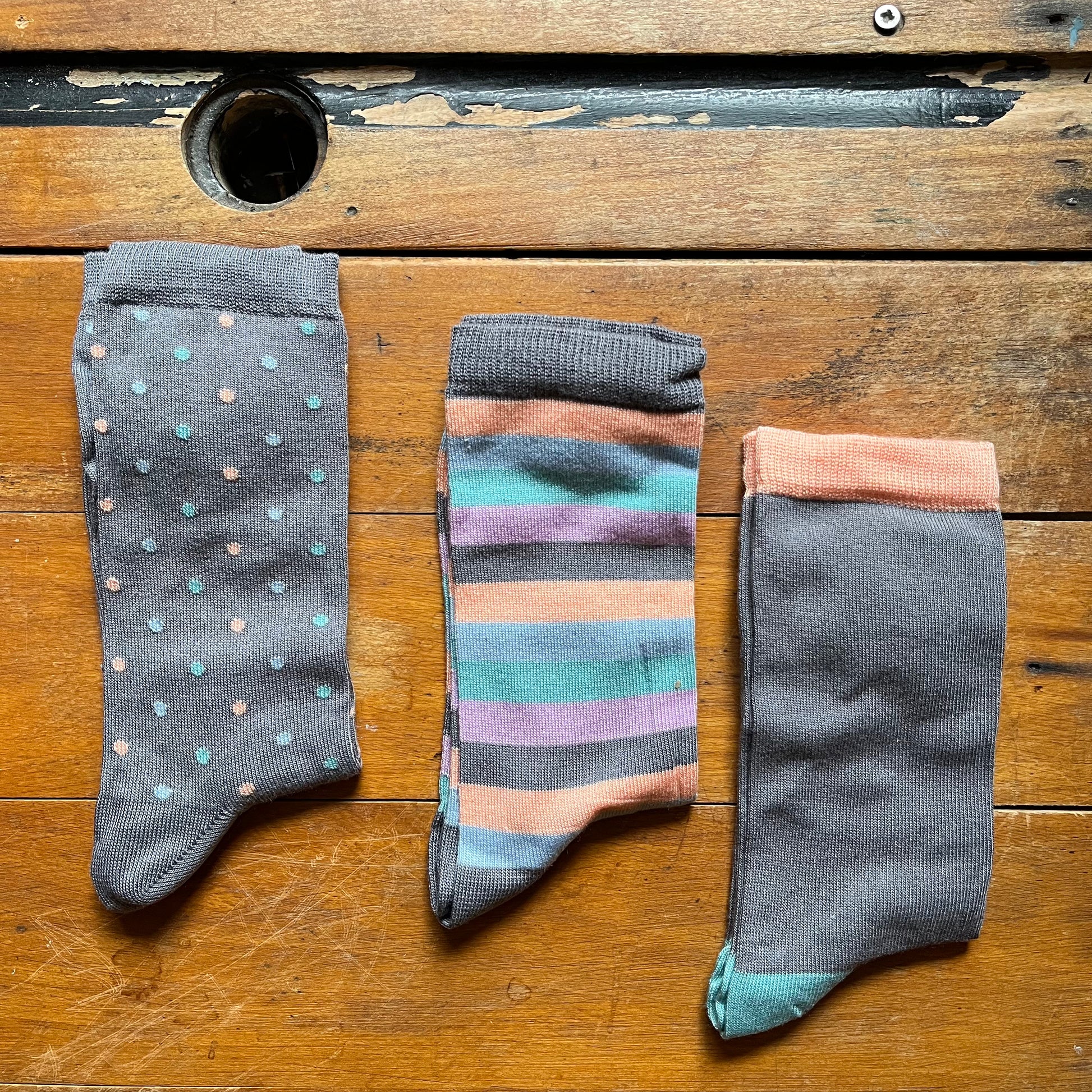 Eco-friendly bamboo-spun sock three-pack including different colouring and patterning. Bamboo make socks designed for practicality and comfort, with re-inforced toes and heels to help kit you out and prevent any kinds of blister or wear and tear on your tootsies. These are perfect socks to take walking, hiking, camping etc, and come in a stylish array of designs. With three pairs in a box, you'll be sorted and thankful next time you're halfway up a mountain!