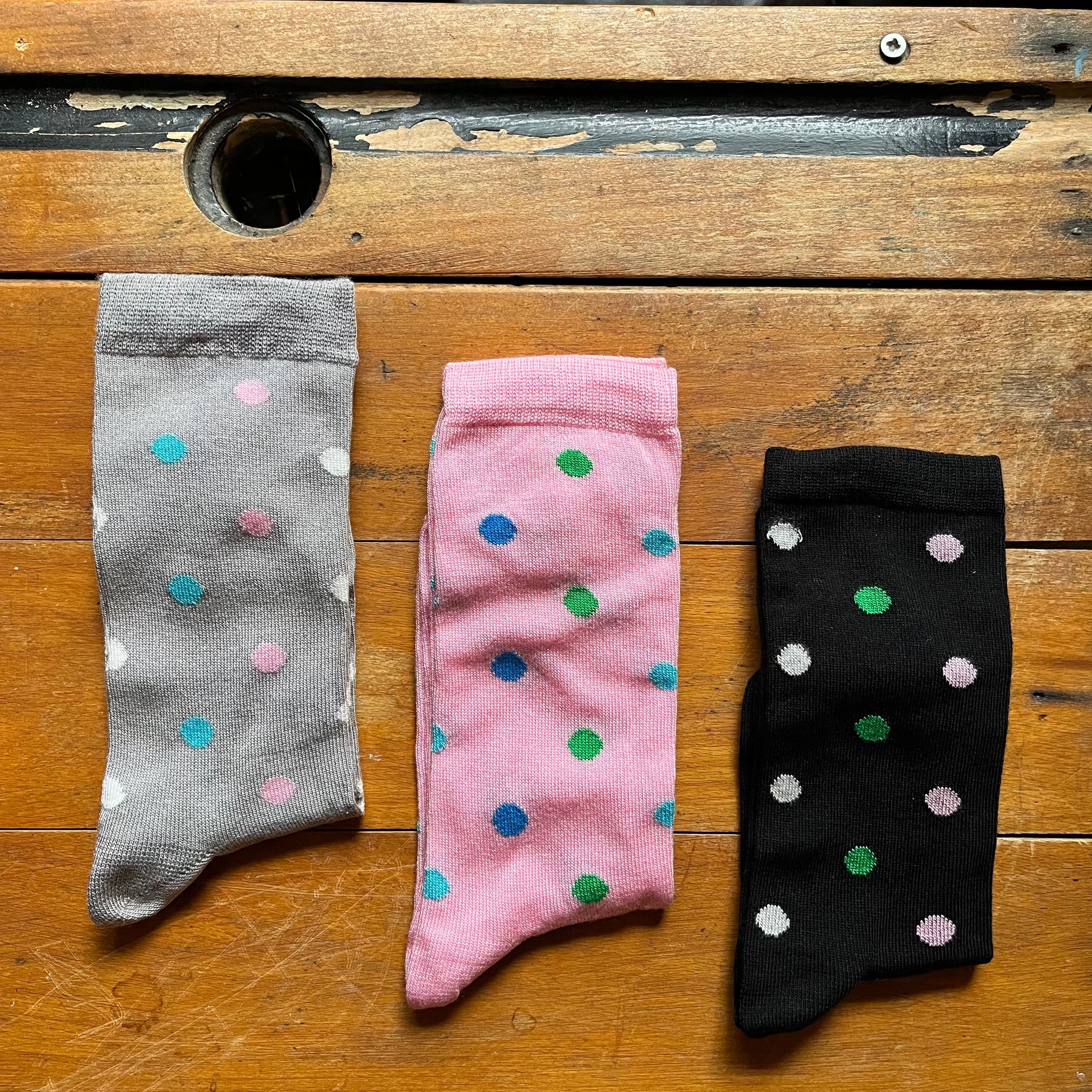 Bamboo - 3 Pack Sock Set - Black, Grey & Pink with Spots - Ladies