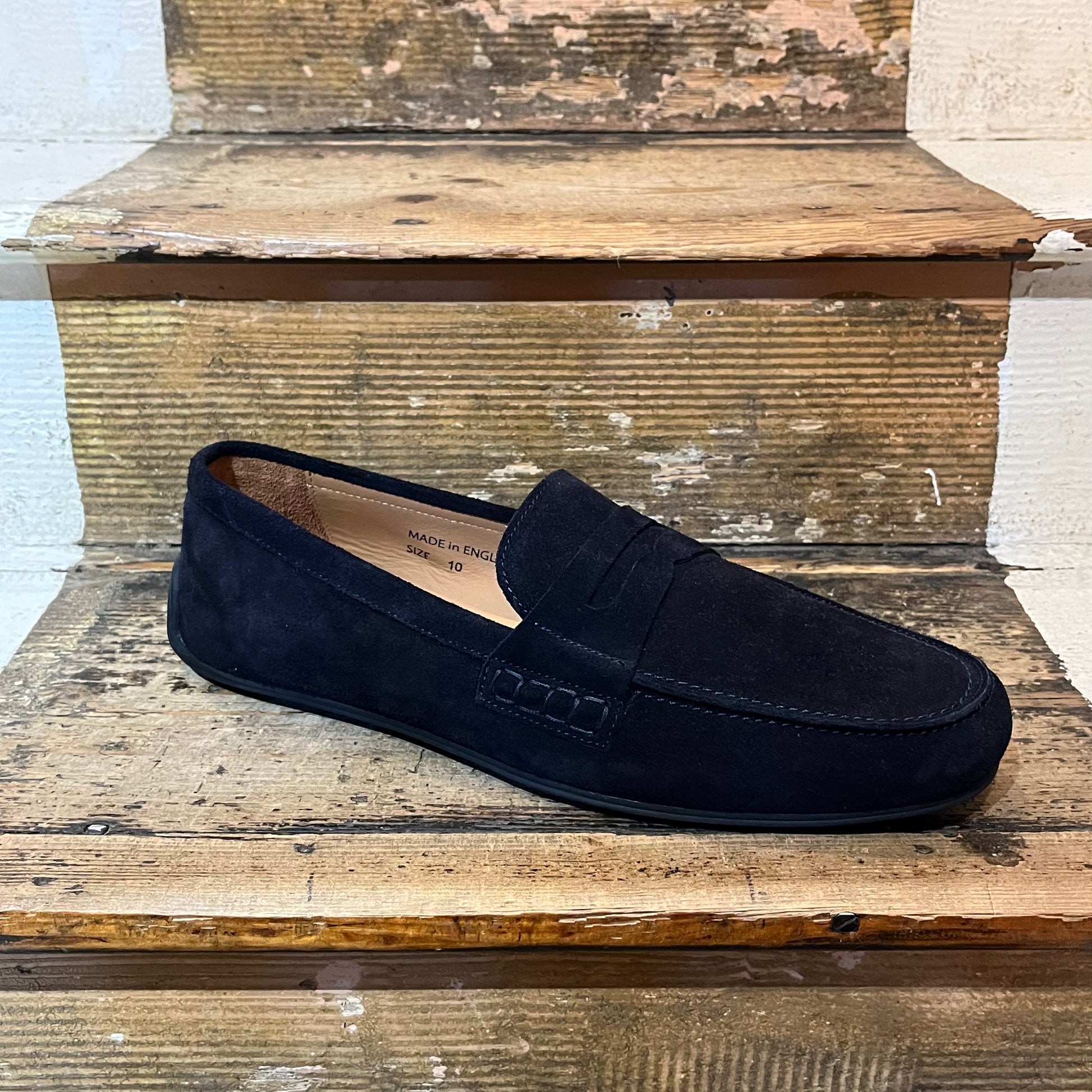 A lovely driving shoe from Joseph Cheaney in blue suede. Classic driving shoe style with a flexible rubber sole and penny loafer trim detailing. Wearing these will no doubt help you shave minutes off your lap times (please drive sensibly) or finish off any warm weather outfit should you prefer. Wear with linen trousers and a vintage Ferrari.
