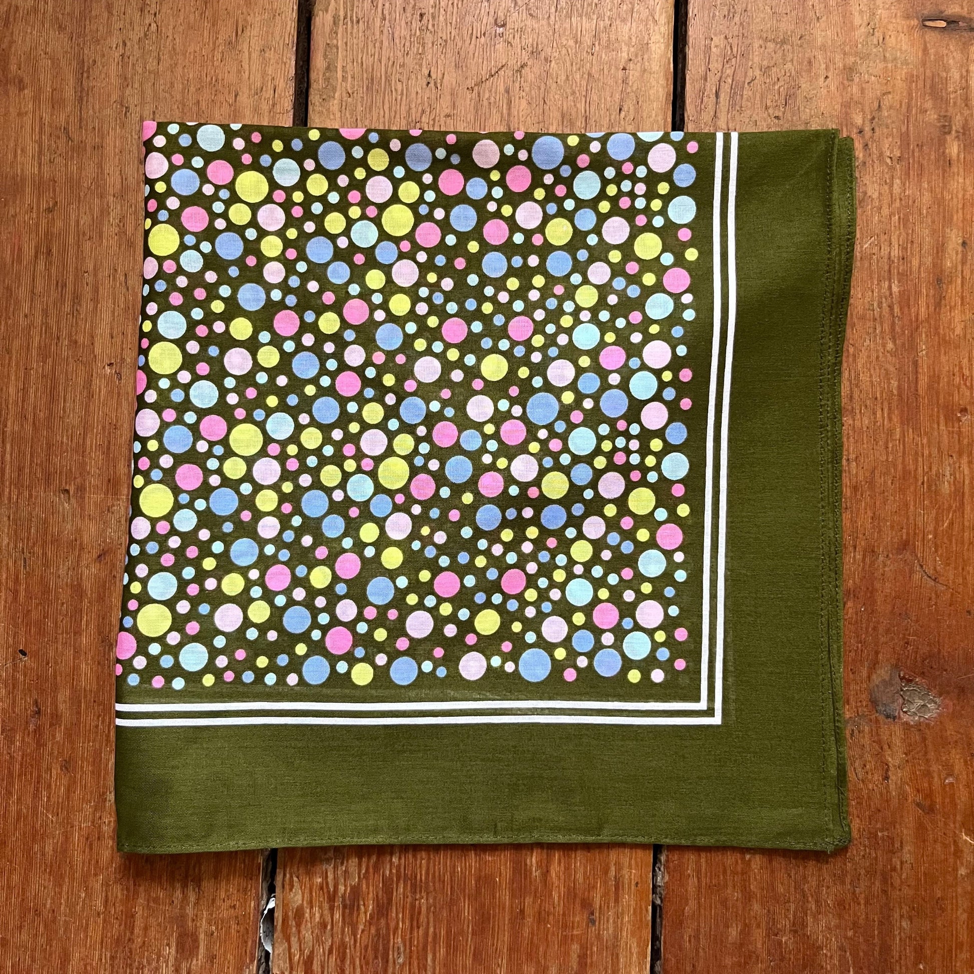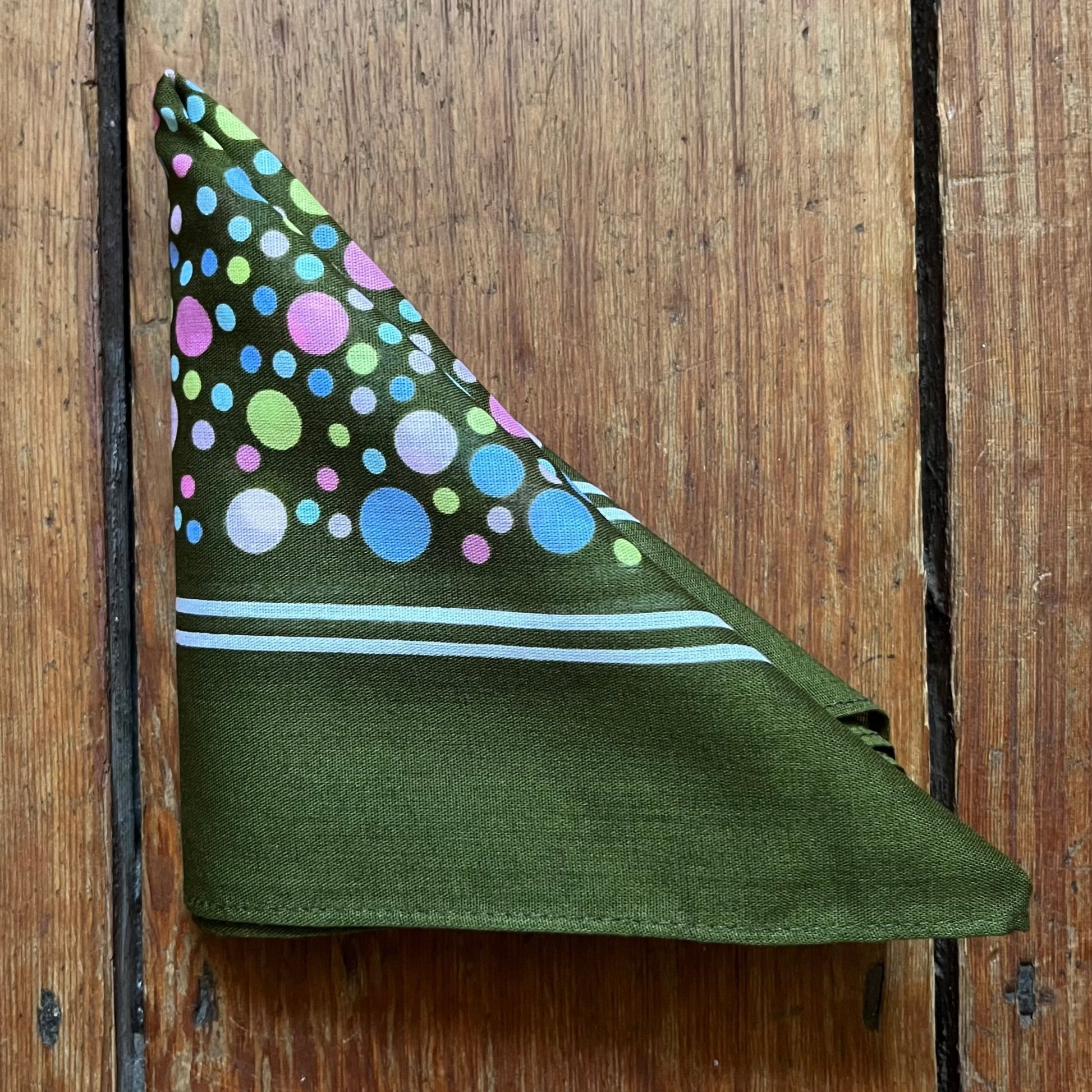Regent - Cotton Hanky - Bandana - Green with Multicoloured Spot