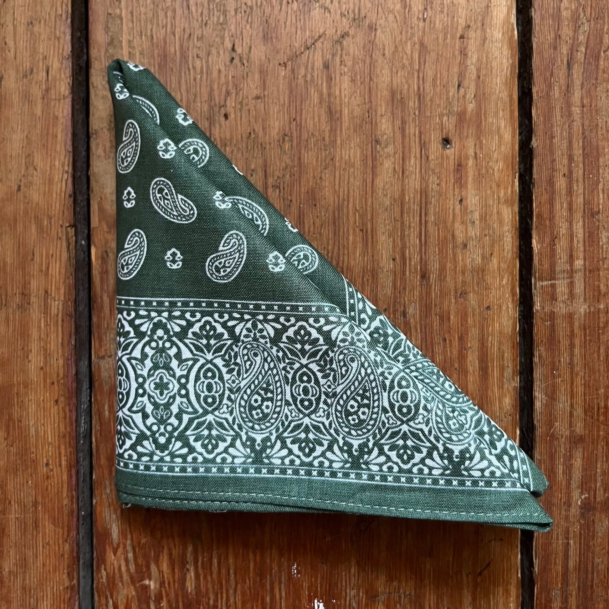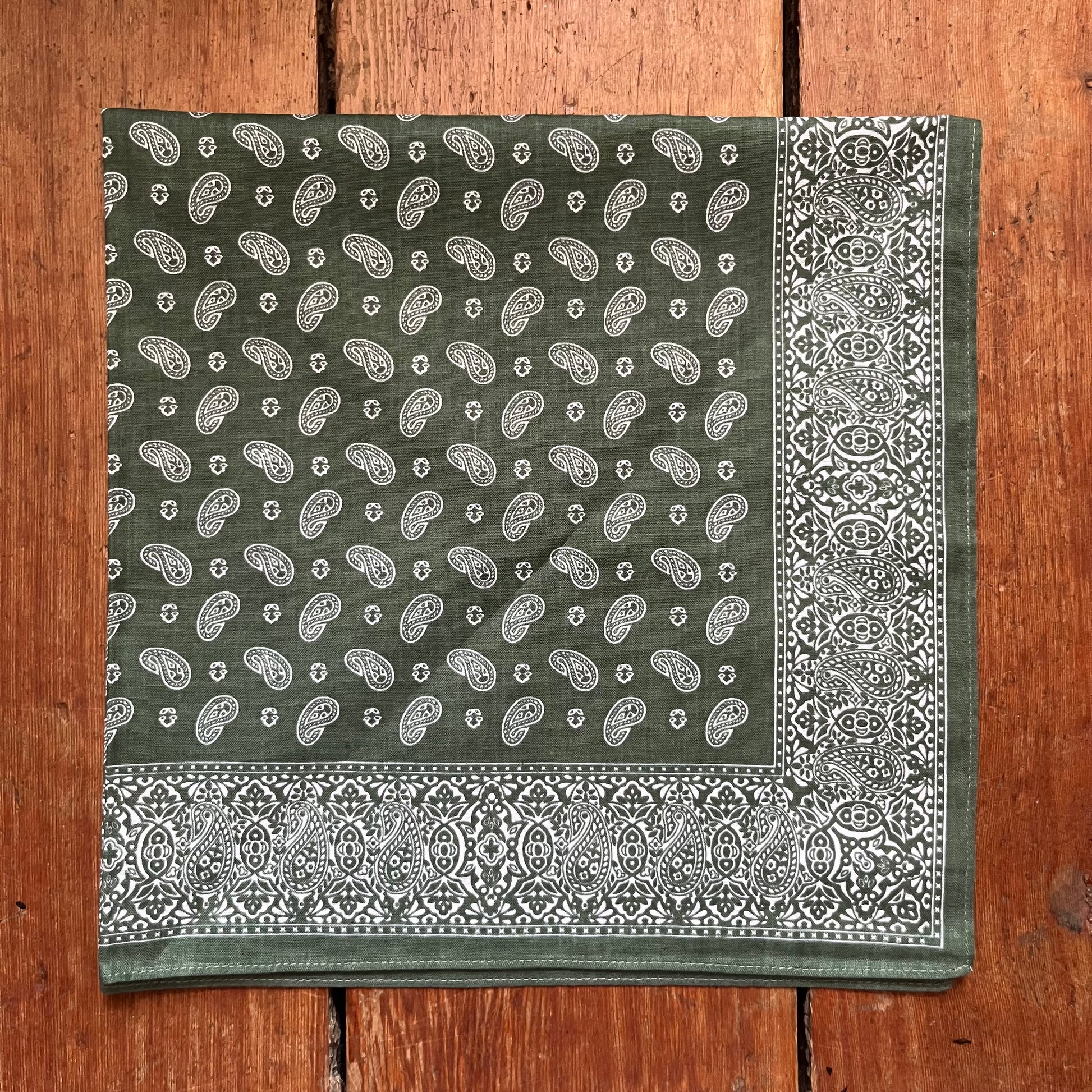 Regent - Cotton Hanky - Bandana - Green with White Paisley