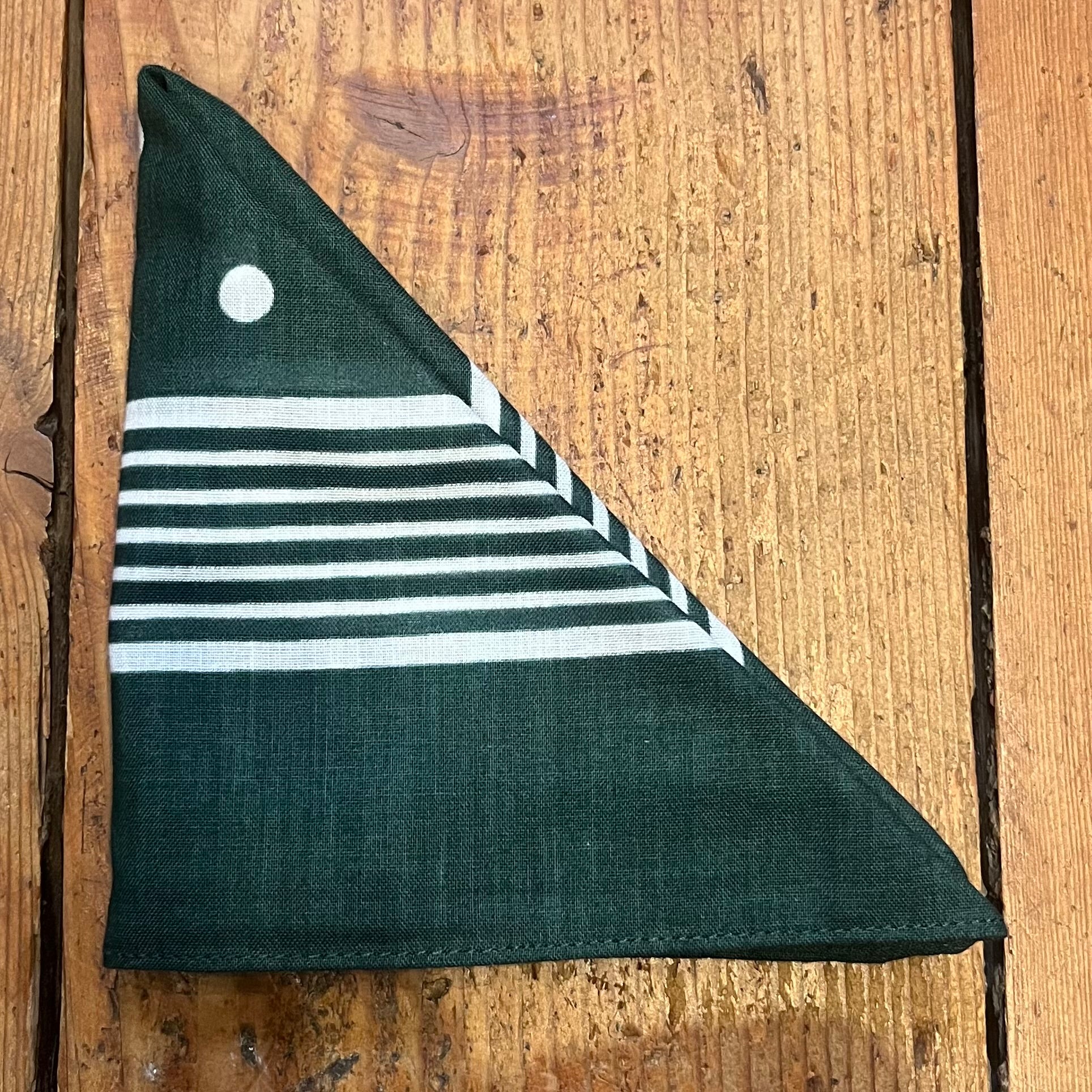 Regent - Cotton Hanky - Bandana - Green with White Spots and Stripe