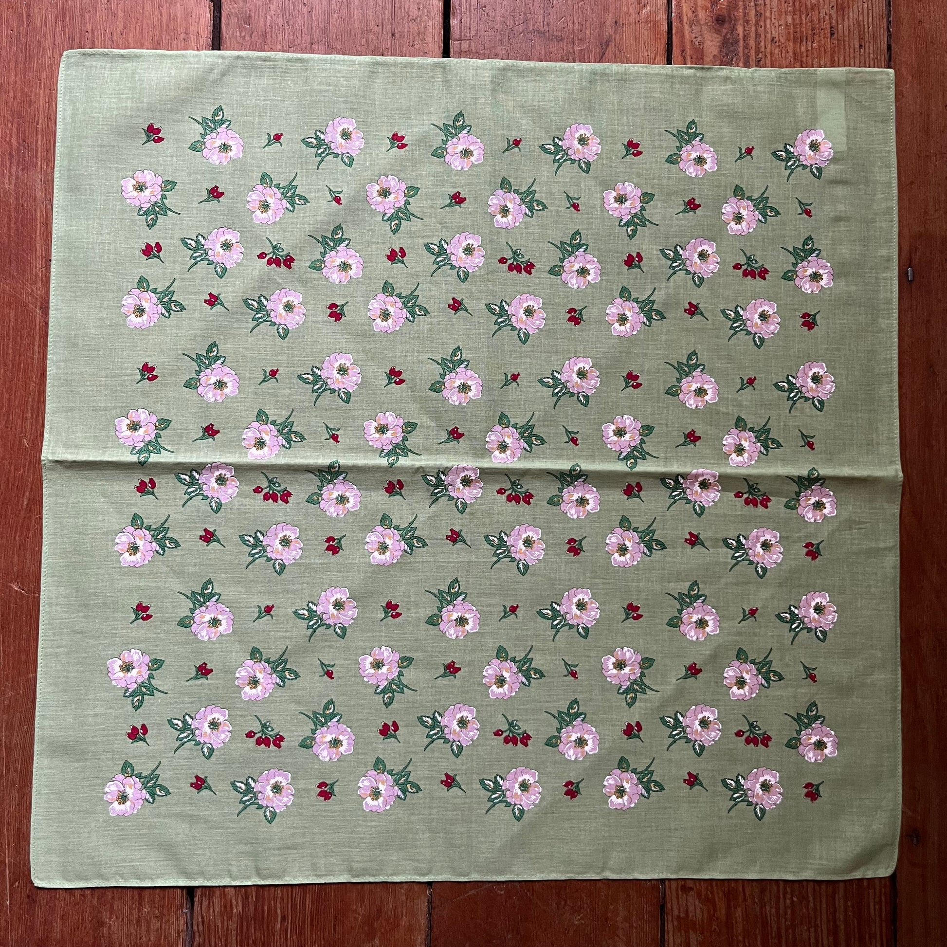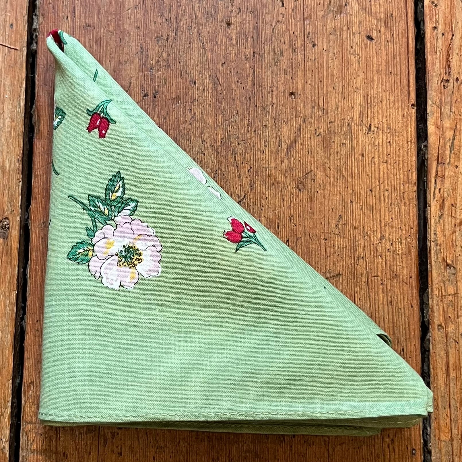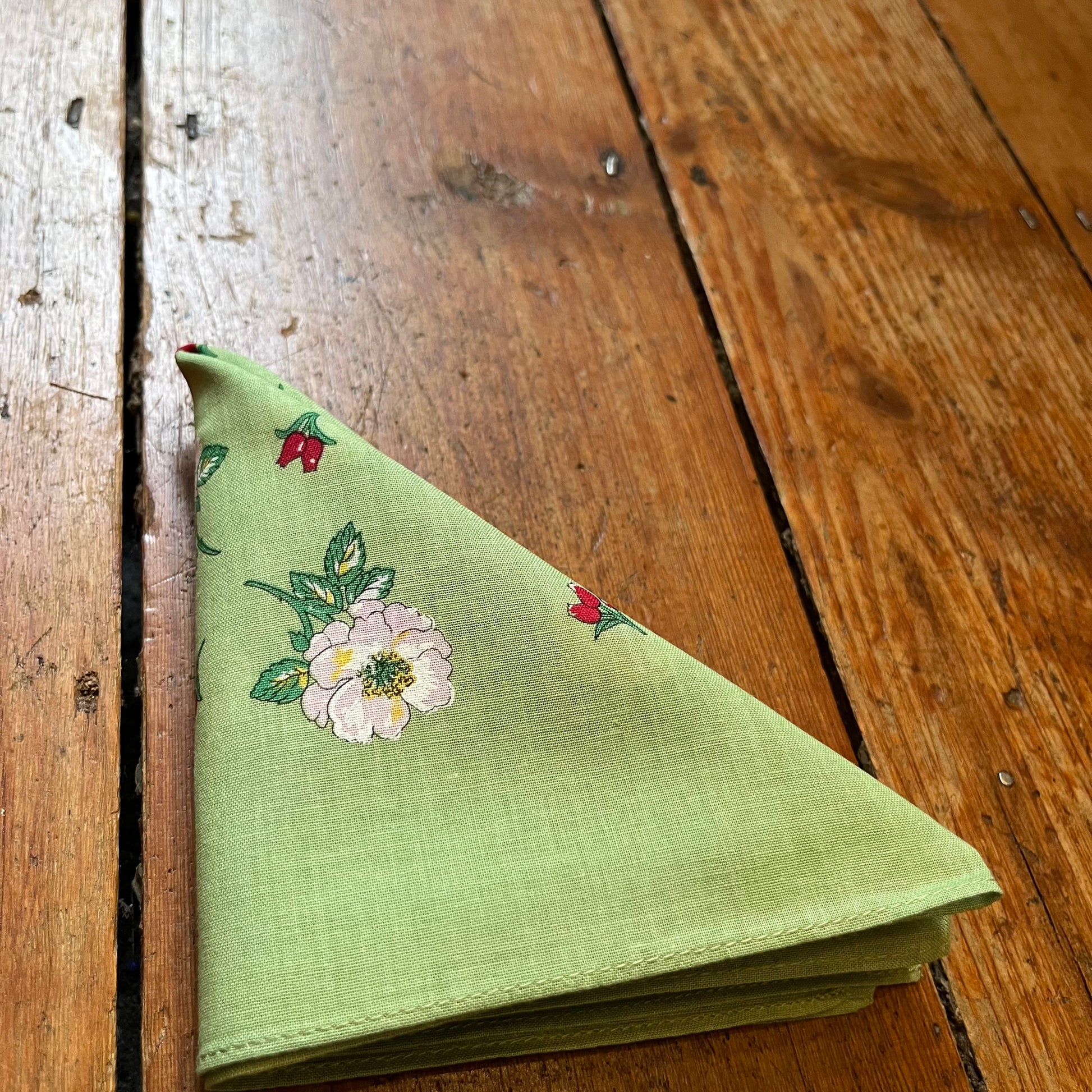 Regent - Cotton Hanky - Bandana - Apple Green with Wildflowers