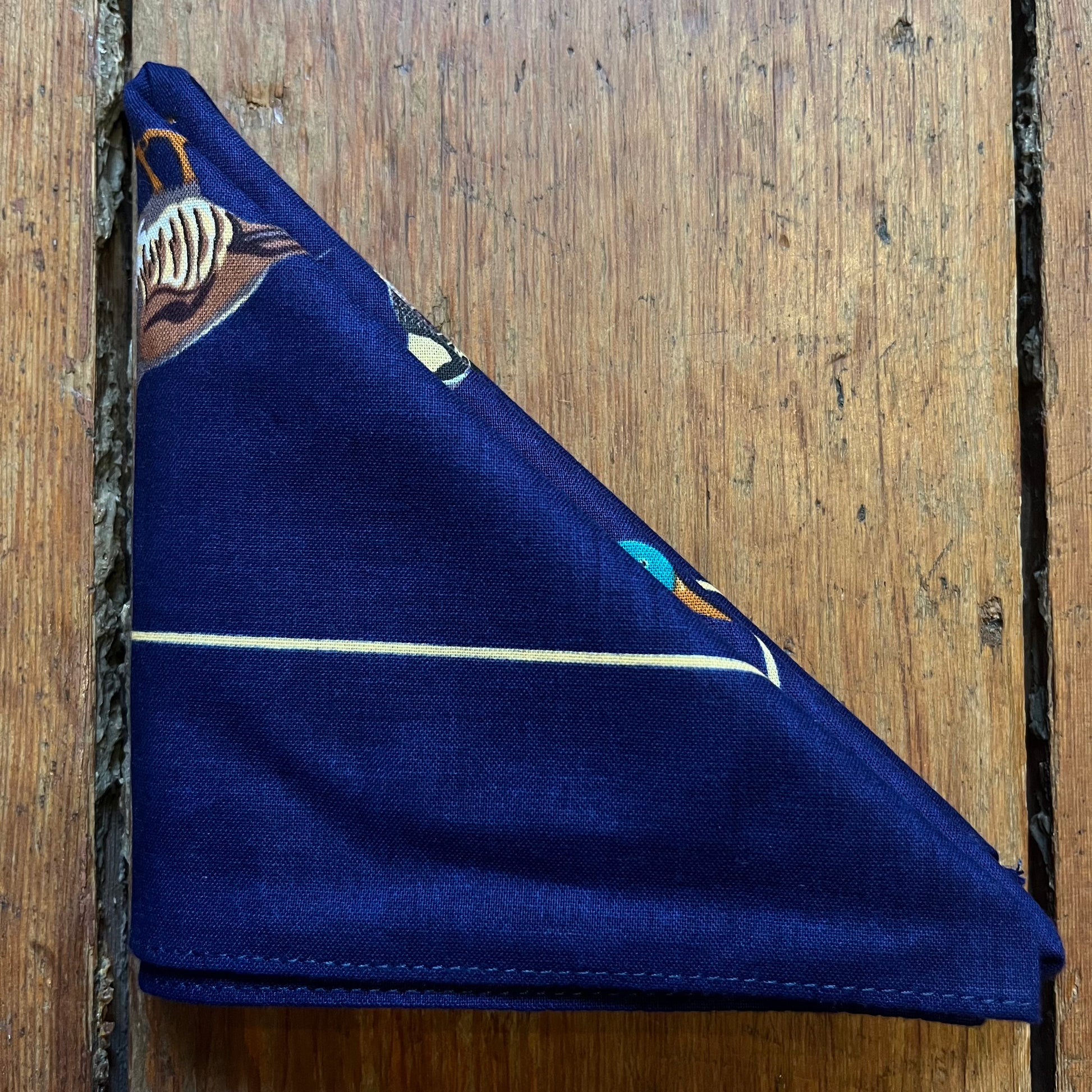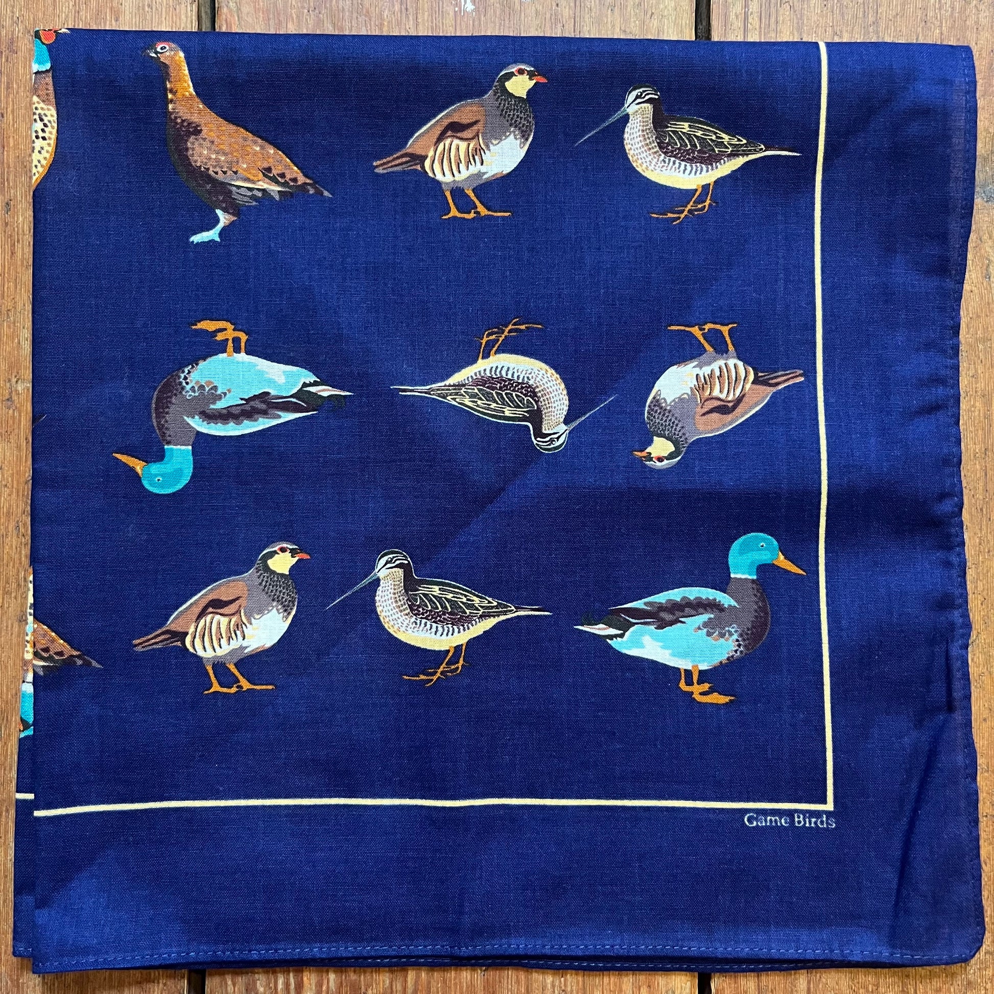 Regent - Cotton Hanky - Bandana - Navy with Country Birds