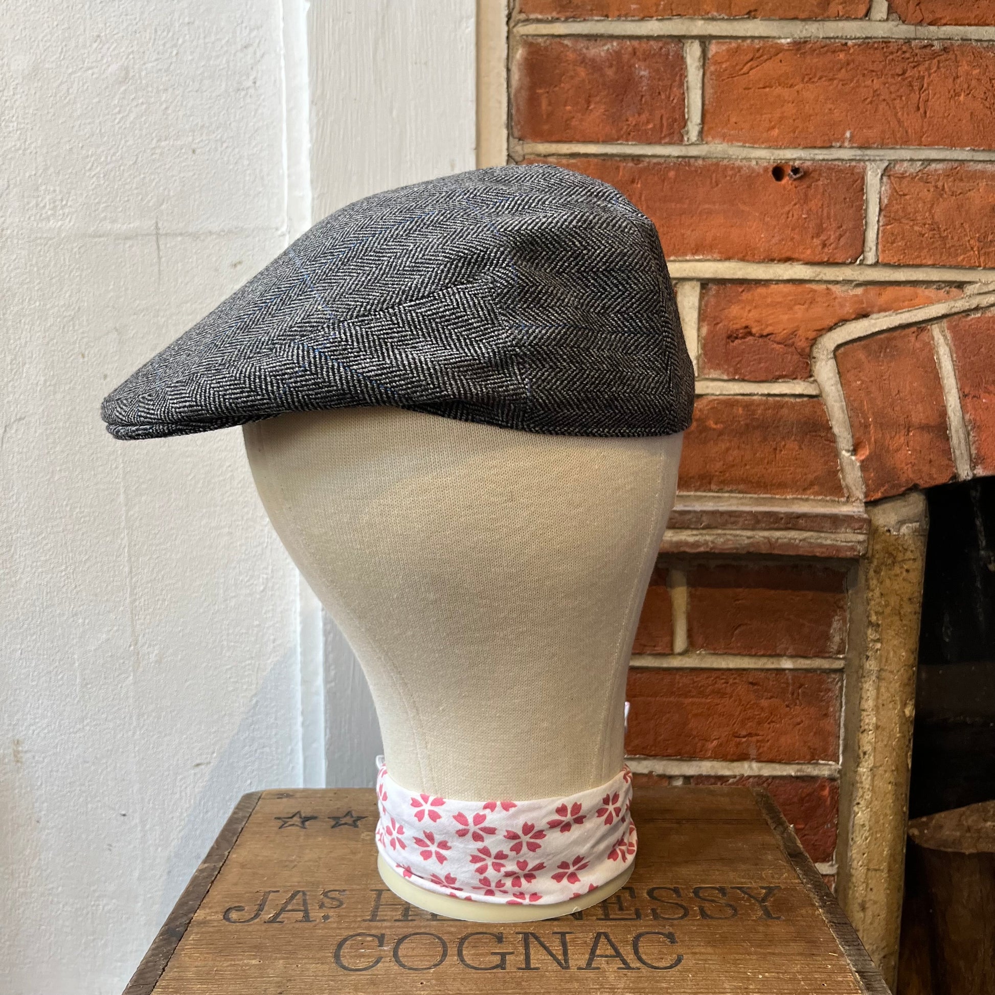 British-made slate-grey tweed flat cap with pale blue overcheck, designed and stocked exclusively by Regent. Regent provides the perfect range of well-made, expertly cut, no-nonsense flat caps, all made in the UK and bristling with heritage. An all-time classic, great for the city and the country: an iconic garment that still feels authentic and timeless. Made from the best cloth with a comfortable lining and a dynamic fit, this'll be your go-to favourite, suitable for any outfit, any style, all the time.