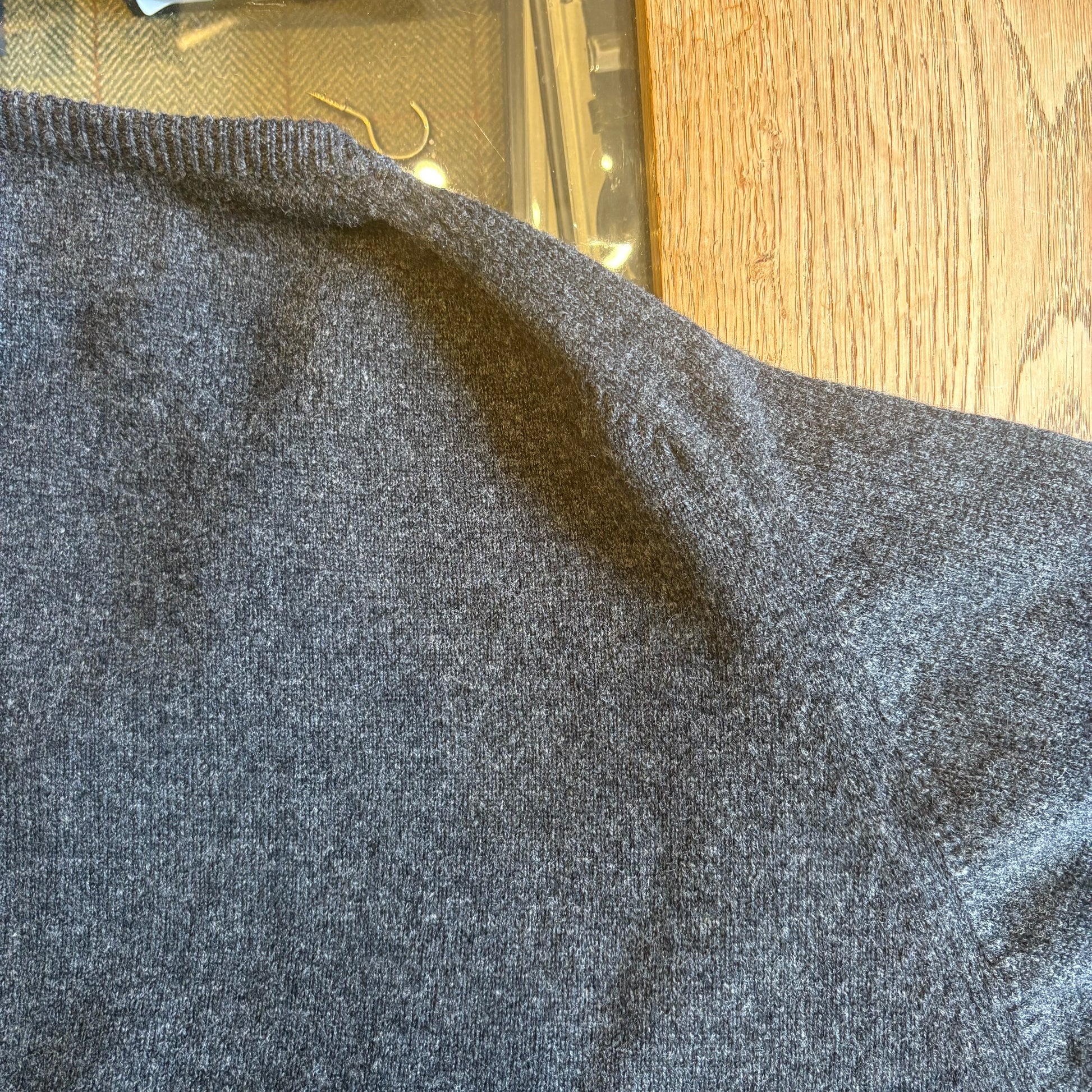 This 100% Geelong lamb wool charcoal grey Regent v neck jumper is both cosy and stylish, with delicate ribbed detailing on the hems and cuffs. Perfect for a smart-casual look, it pairs well with a white tee and a classic red wing moc. Made in Scotland with a focus on quality.