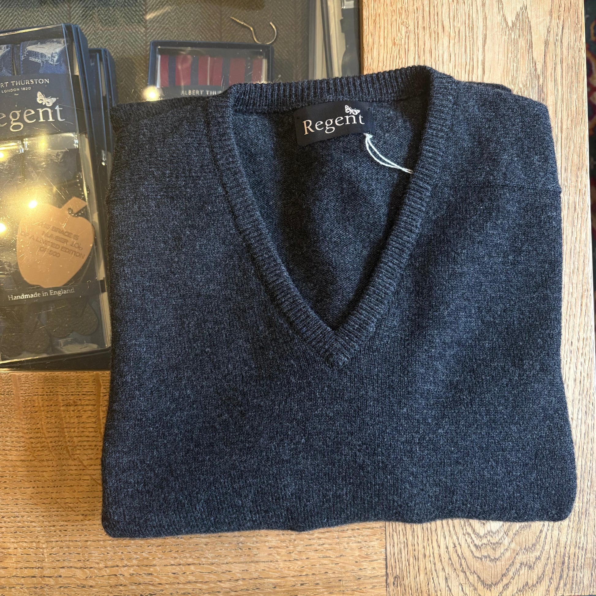 Regent - V Neck Jumper - Geelong - Charcoal Grey
