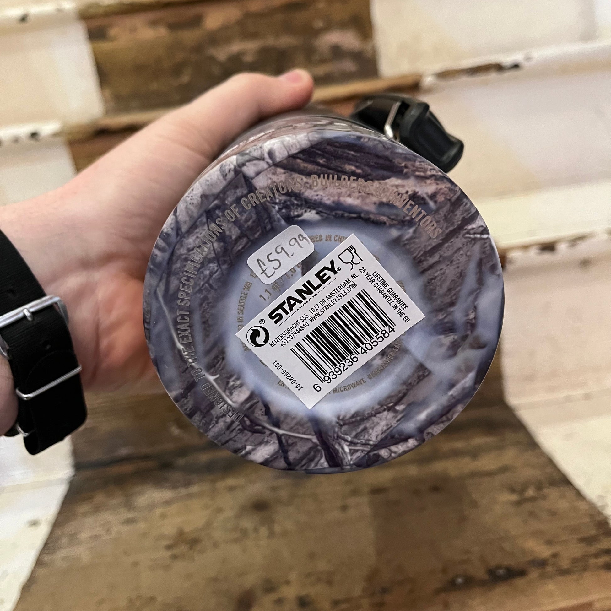 Stanley's Classic Legendary Bottle - 1.0L - with a country print design is perfect for your outdoor adventures. Its timeless and durable design, inspired by nature, will keep your drinks hot or cold for hours with its double-wall vacuum insulation. The insulated lid can also be used as a cup and the collapsible handle makes it easy to pack and carry.