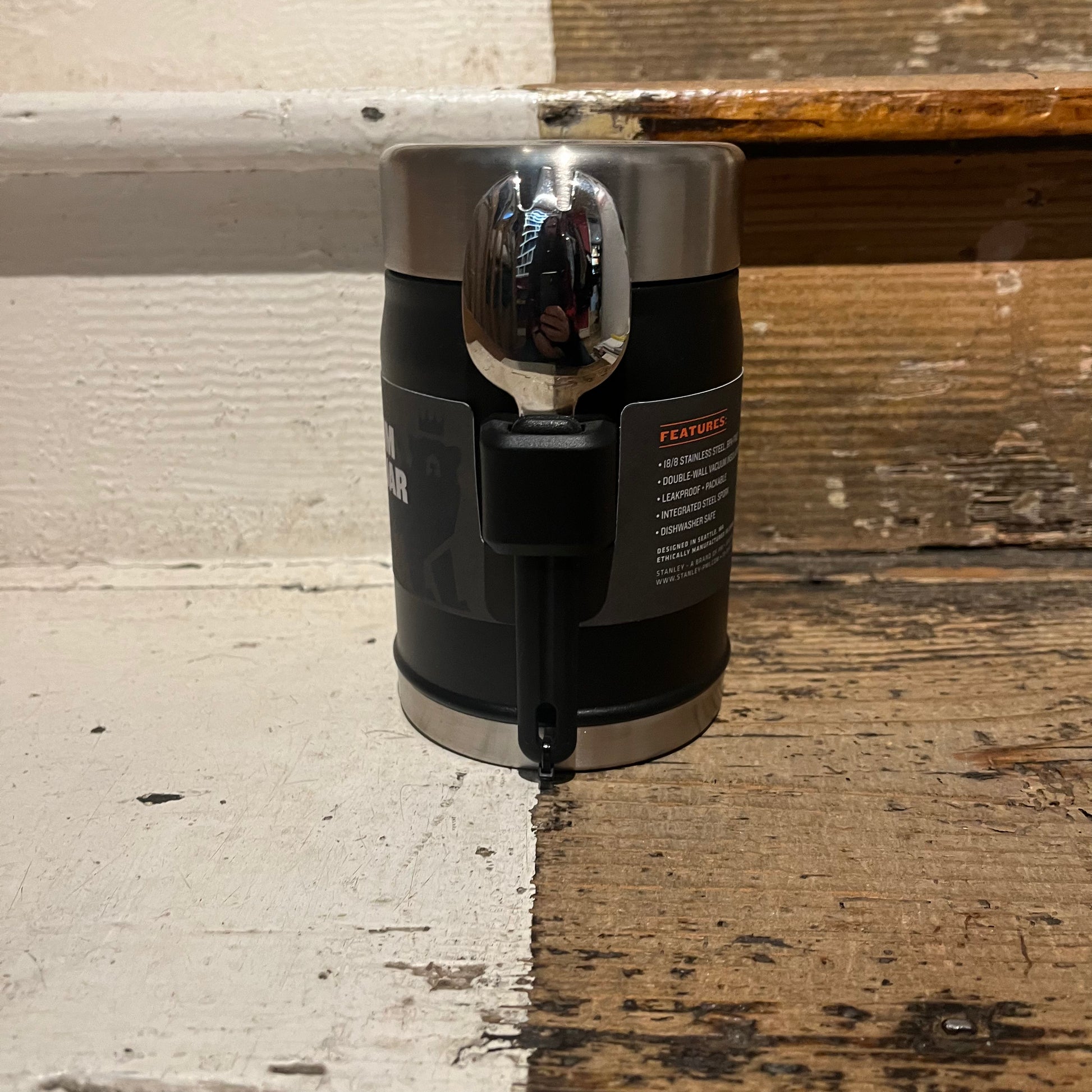 Leak-proof seven-hour heat retention vacuum food jar for camping or trips away by pro-equipment suppliers Stanley, featuring integrated steel spork and lifetime warranty. Works for keeping things cold as well as hot. The jar features an insulated lid and pressure-released valve for easy opening. It comes with an integrated stainless steel spork to provide the ultimate easy, safe, leak-proof camping dining experience. Great for roadtrips, camping trips, festivals and office lunches.